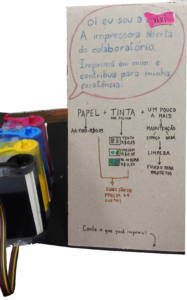 Batizamos o projeto de Colaboratório. Chamamos nosso pequeno grupo de “zeladores” do espaço, combinando de nos reunir ali toda 4ª-feira, e trouxemos nossos materiais e impressoras. Essas impressoras eu tinha descoberto uma adaptação no sistema de tinta que me deixa livre do monopólio de cartuchos da fabricante, o que torna a impressão baratíssima. Tendo esse meio de produção sofisticado e econômico, eu queria partilhá-lo, tanto para que me ajudassem a desenvolvê-lo e consertá-lo, quanto porque acredito no poder da publicação impressa e da sua democratização.