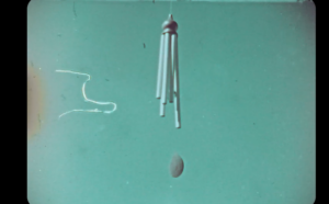 Destaco a reincidência do processo respiratório e das mãos como sentido de transformação e criação, que se interessa pela experiência tátil e corpórea no ar. Porém, o filme se atenta de forma mais concentrada na visualização do ar a partir de seu caráter indicial, ao interagir com os objetos e seres do mundo: as folhas, os sinos, os pássaros e as nuvens. Essa característica é importante para pensar a relação dialógica que o ambiente aéreo possibilita, em constantes processos de mediação e em contínuo movimento.
